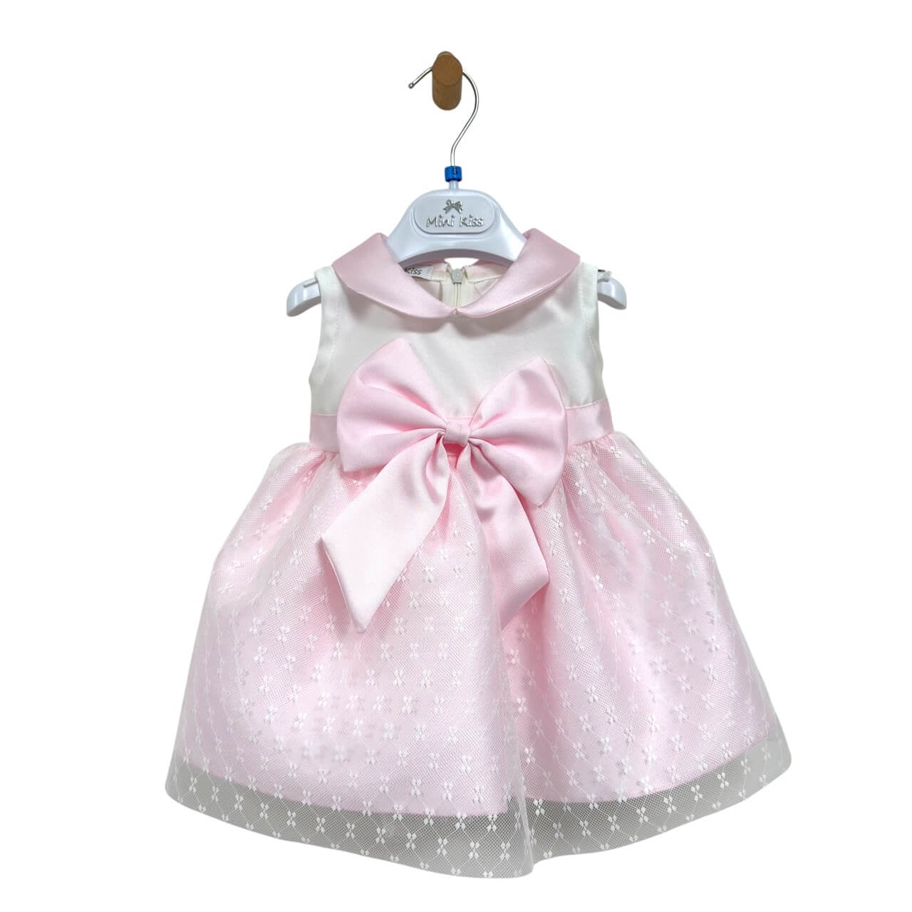 Eleganza e dolcezza si incontrano in questo raffinato abito da cerimonia firmato Mini Kiss, pensato per accompagnare le occasioni più speciali con stile e qualità tutta italiana.