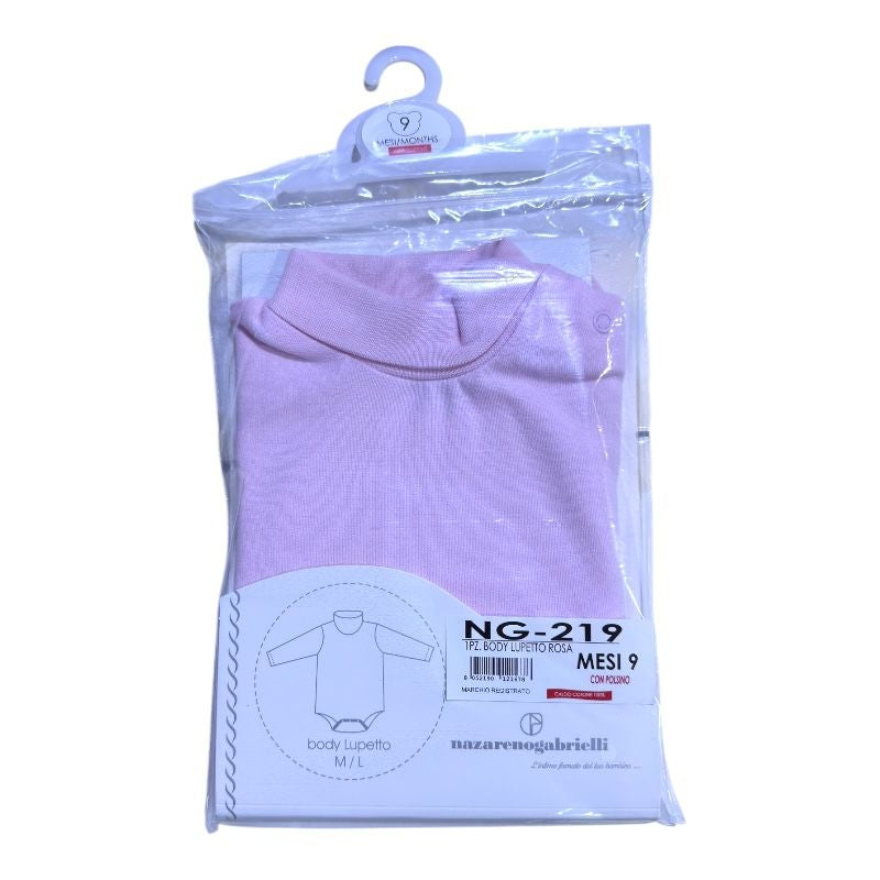 • In morbido cotone garzato. manica lunga. collo a lupetto. apertura sulla spalla e al cavallo con comodi bottoncini a pressione.