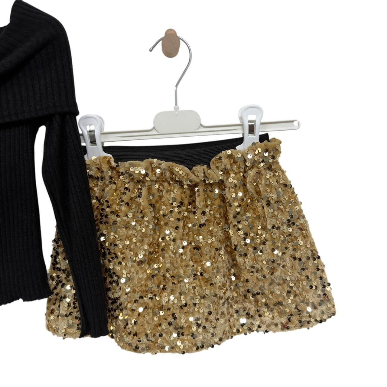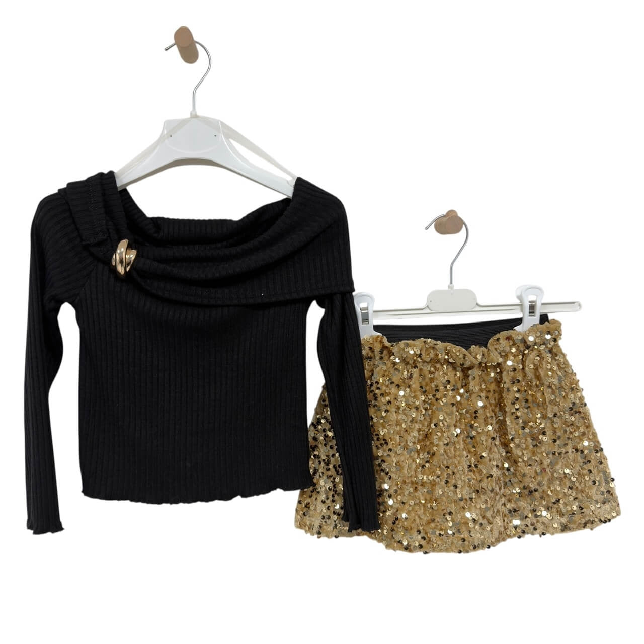 Completo Bambina Nikka Nature – Maglia Nera e Gonna Oro Paillettes