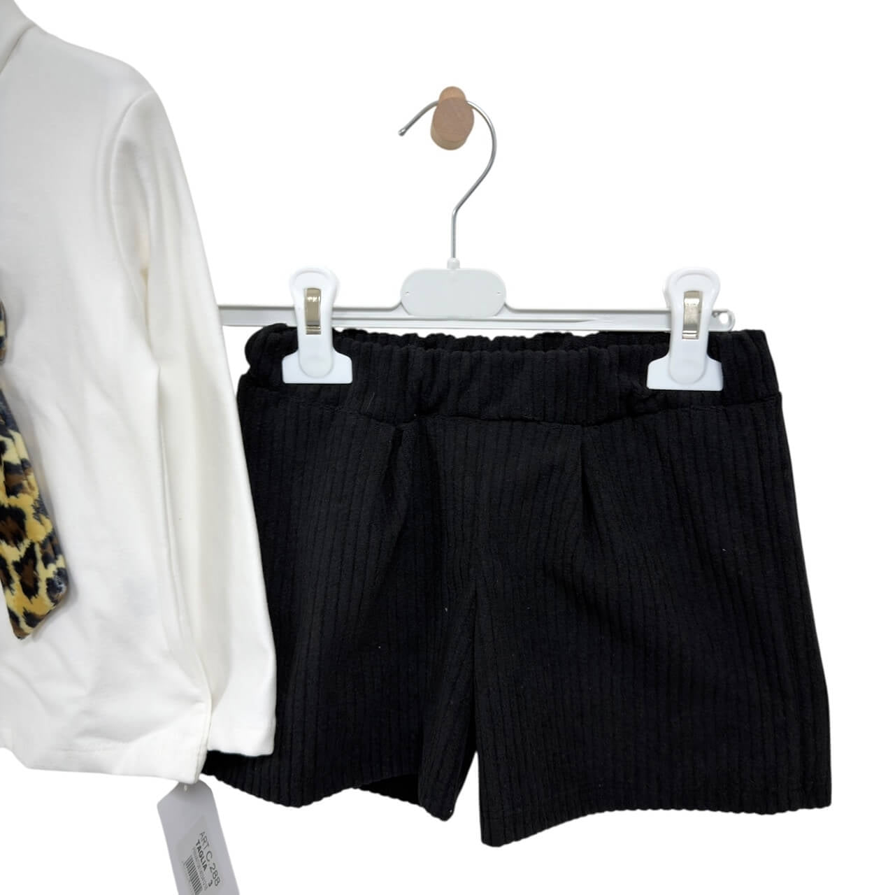 Pantaloncino a costine in tessuto felpato color marrone, morbida e comoda da indossare.