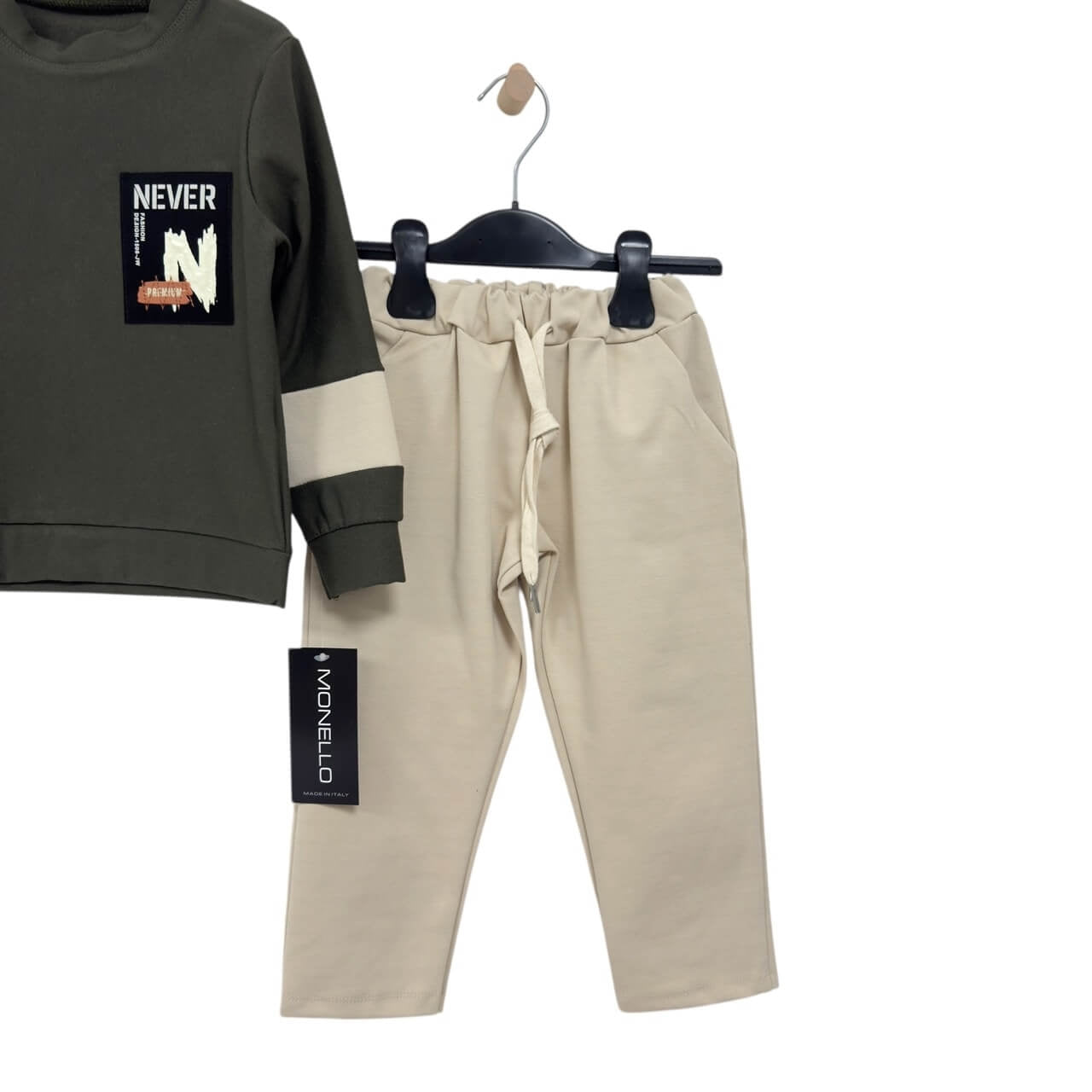 Pratico e confortevole completo invernale firmato Monello, ideale per accompagnare i più piccoli durante le giornate fredde con comodità e stile.