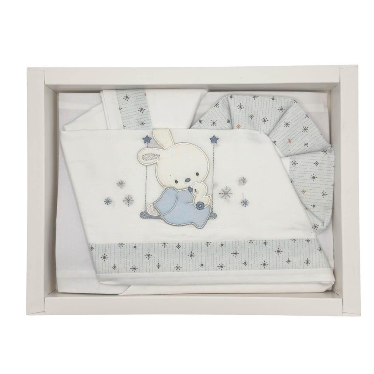 Set lenzuolino per lettino realizzato in 100% cotone, morbido e delicato sulla pelle del neonato. Un completo pratico e sicuro, ideale per accompagnare il riposo del bambino con comfort e qualità.