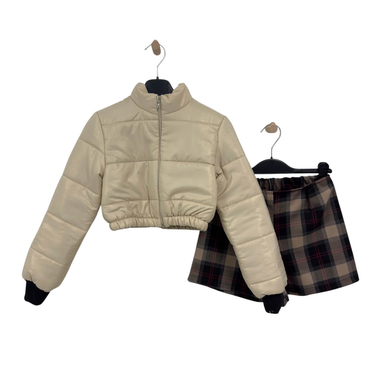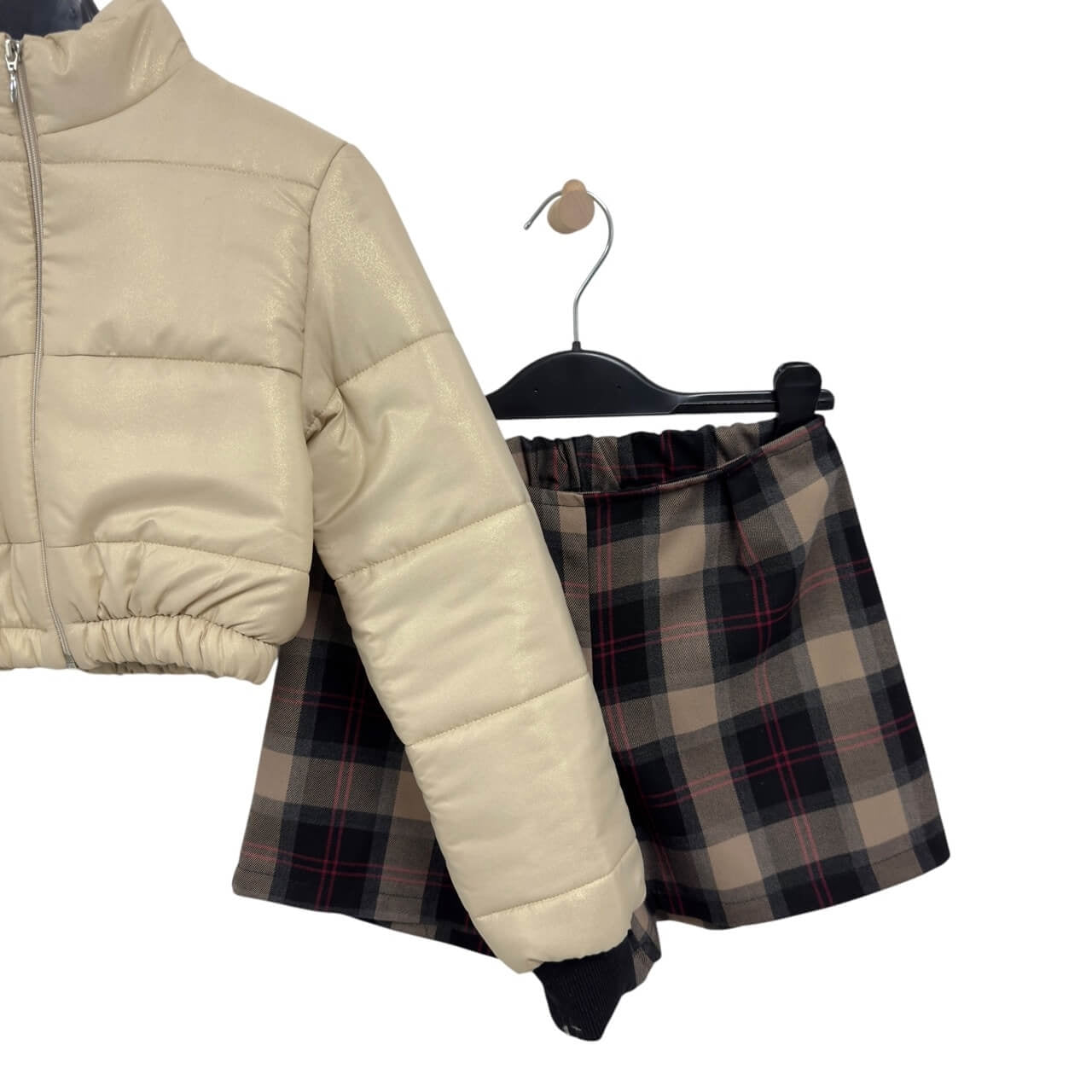 Completo bambina Camilla 3 pezzi con pellicciotto e gonna