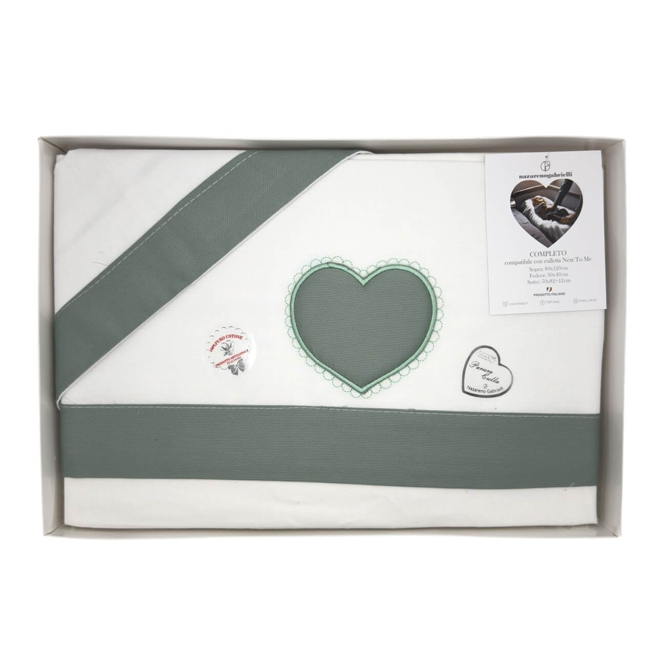 Completo lenzuola 3 pezzi in 100% puro cotone , il set lenzuola è misura maxi compatibile con le misure culla next to me. Misure: Lenzuolo sopra 80x120 cm - Sottolenzuola con angoli 50x82x12 cm - Federa cuscino 30x40 cm. Prodotto ideato, tessuto e confezionato in Italia.Il lavaggio può essere effettuato a mano o in lavatrice ad una temperatura massima che non superi i 40°C.