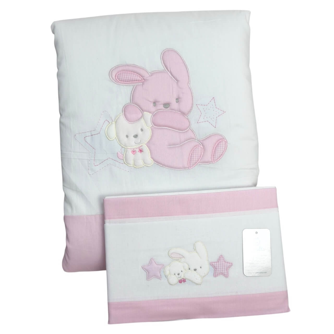 Set per culla grande composto da trapunta sfoderabile e lenzuola coordinate. Realizzato con tessuti morbidi e resistenti, offre comfort e praticità durante il riposo del bambino. La trapunta sfoderabile consente un lavaggio semplice e veloce, garantendo sempre igiene e freschezza. Il set di lenzuola completa il corredo, rendendolo funzionale e adatto all’uso quotidiano.