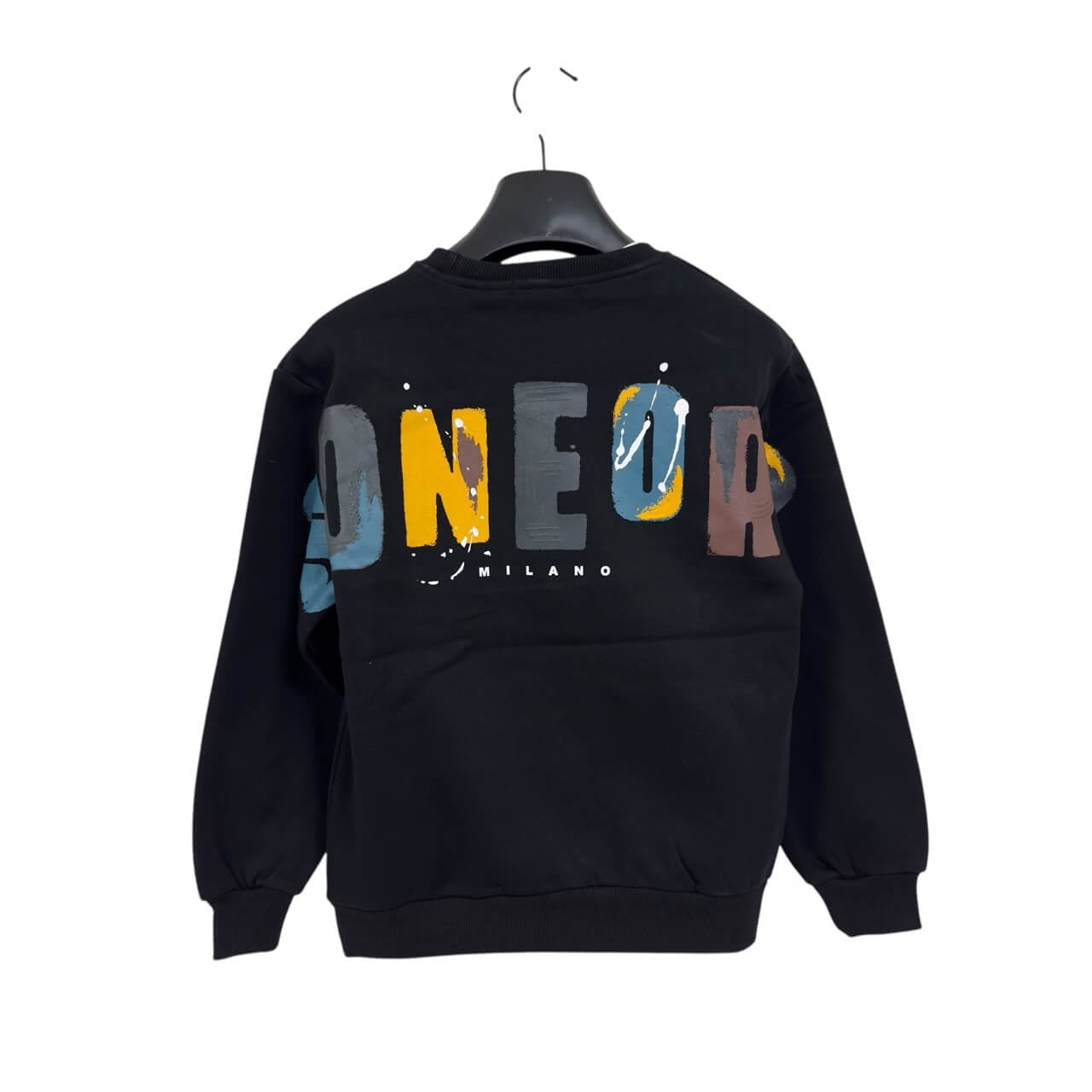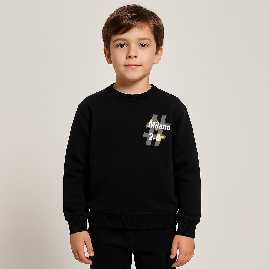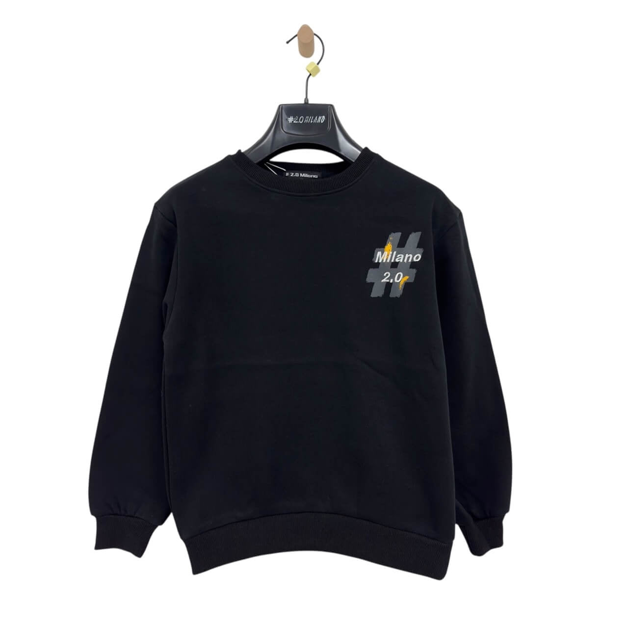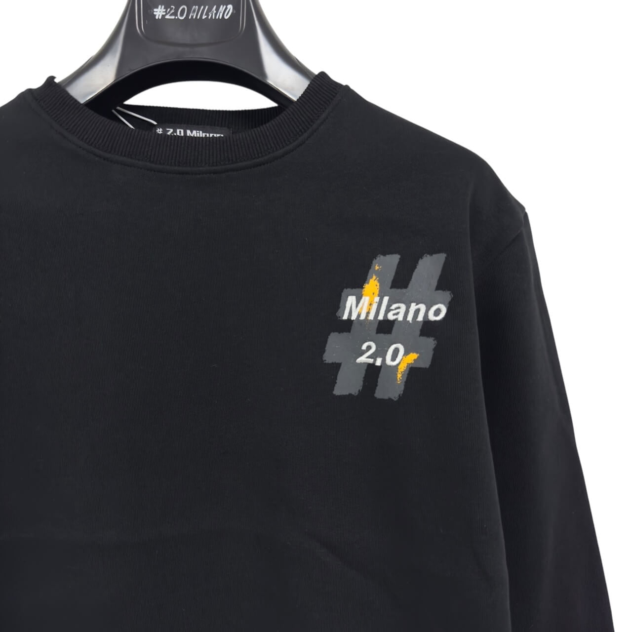 Felpa girocollo in cotone pesante con stampa laterale #2.0 Milano sulla manica e tasca frontale a marsupio. Dettagli curati e zip decorativa sulla manica per un look moderno e grintoso. Ideale per un outfit casual e contemporaneo.
