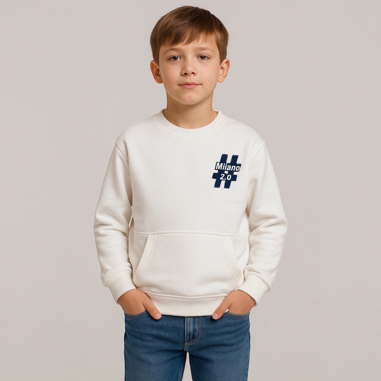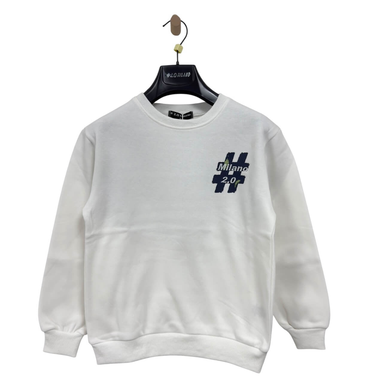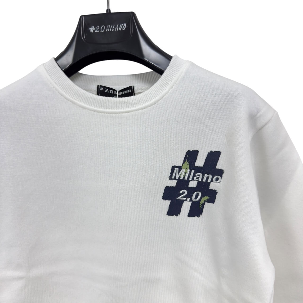 Felpa girocollo in cotone pesante con stampa laterale #2.0 Milano sulla manica e tasca frontale a marsupio. Dettagli curati e zip decorativa sulla manica per un look moderno e grintoso. Ideale per un outfit casual e contemporaneo.