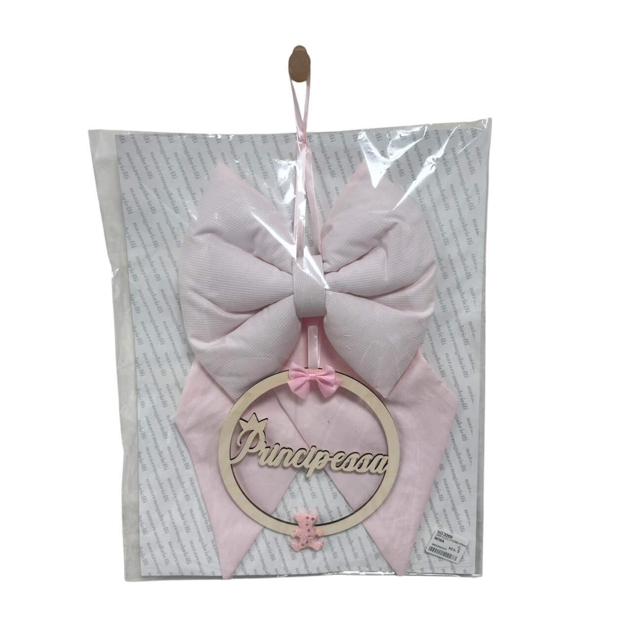 Con una dimensione di 50 cm in altezza e 40 cm in larghezza, è perfetto da appendere alla porta di casa o nella cameretta, aggiungendo un tocco di tenerezza e stile al momento più speciale.