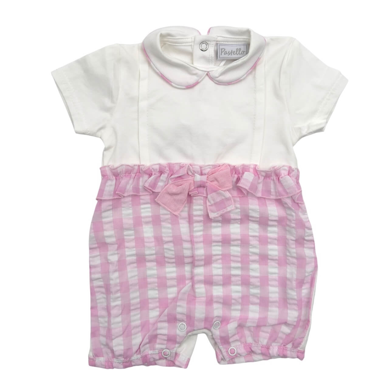 Comodo e delicato pagliaccetto per neonato firmato Pastello, pensato per offrire il massimo comfort nei primi mesi di vita. Realizzato in 100% cotone, è leggero, traspirante e ideale per la pelle sensibile dei più piccoli.