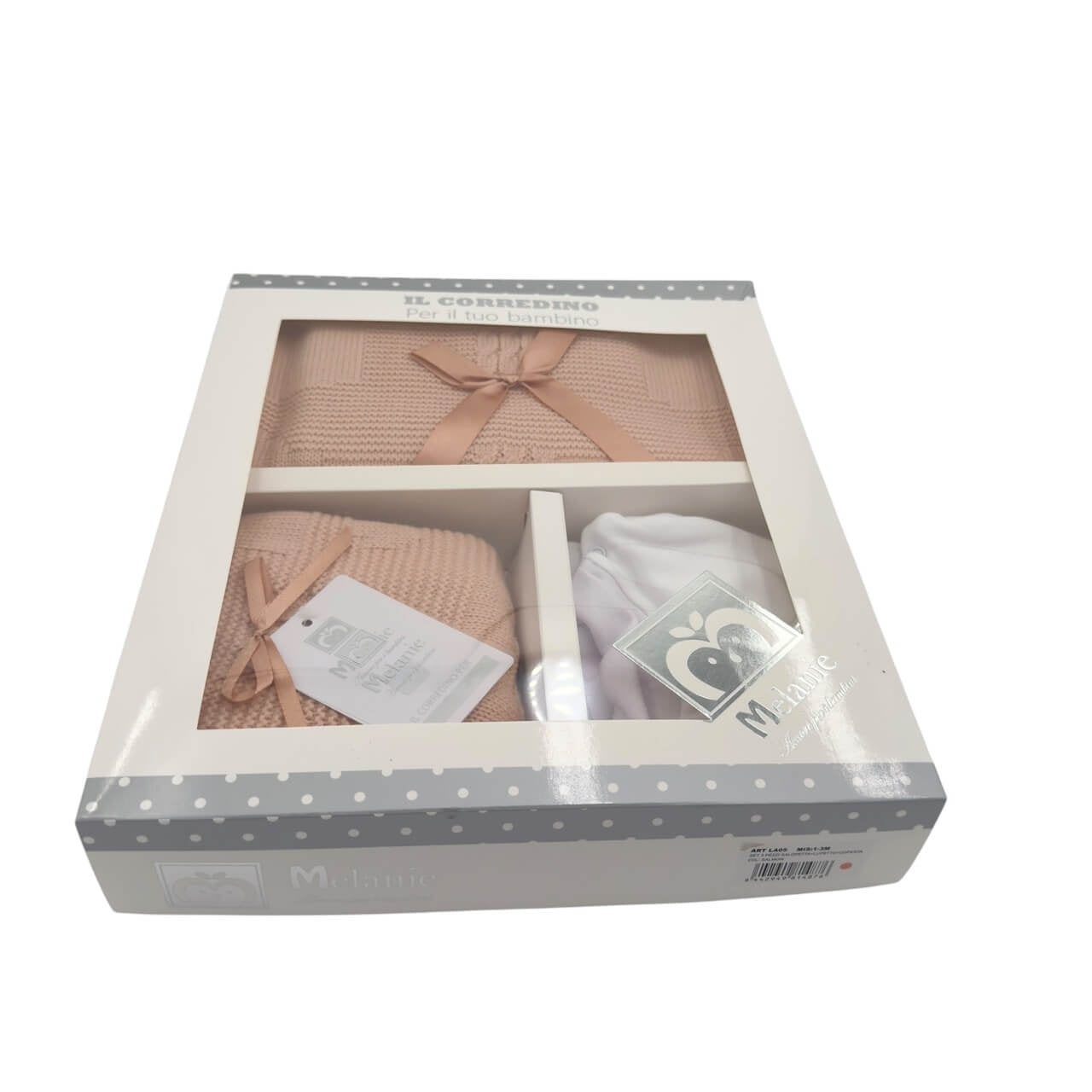 Un coordinato raffinato e confortevole, perfetto come idea regalo o per il corredino nascita.
