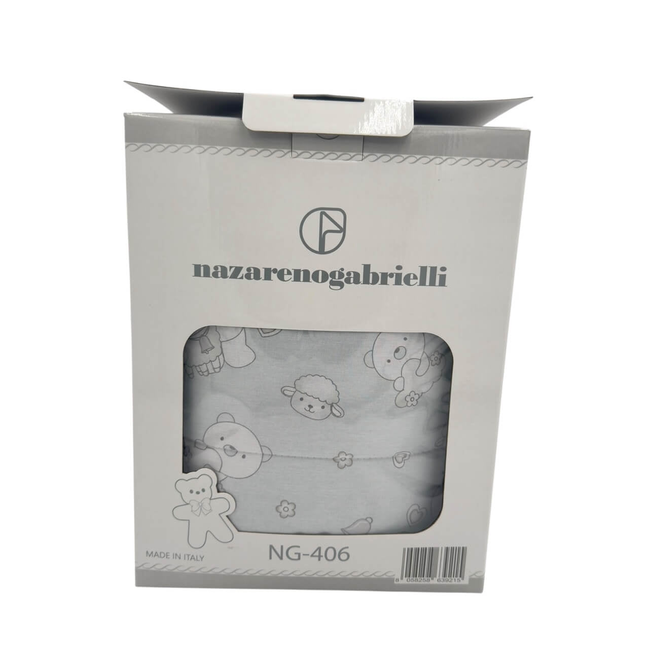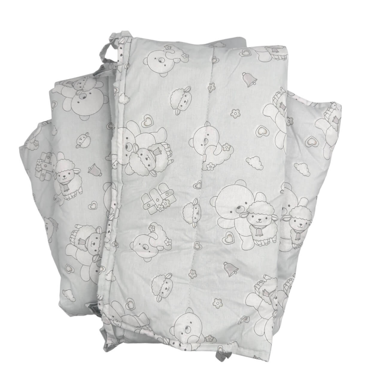 Set coordinato composto da trapunta e paracolpi double face, perfetto per lettino culla grande. Realizzato con tessuti morbidi e imbottitura leggera, offre comfort e sicurezza al tuo bambino durante il riposo. Il design dolce e i personaggi stampati rendono il lettino ancora più accogliente. Prodotto firmato Nazareno Gabrielli e confezionato in elegante scatola.
