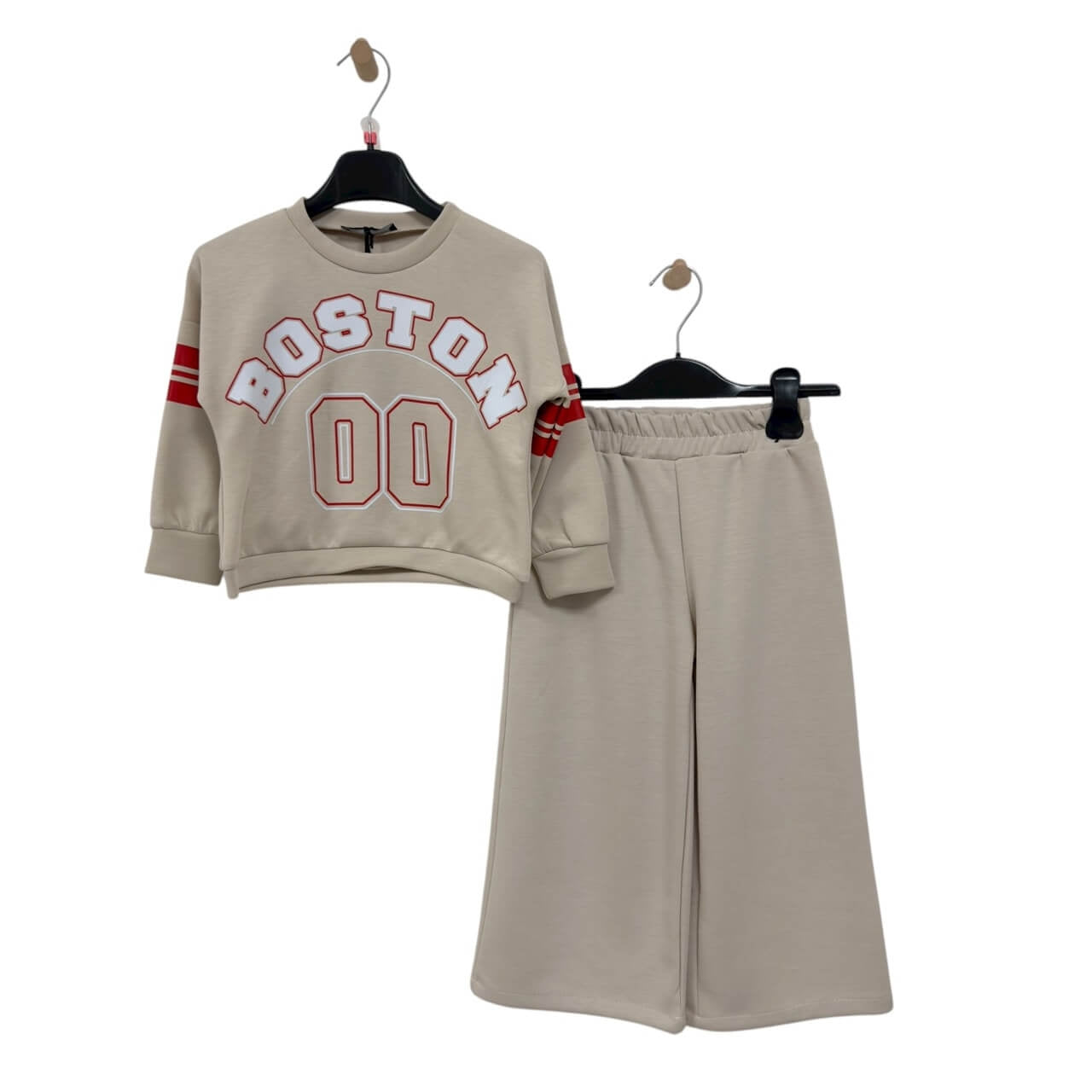 Completo comodo e moderno composto da felpa girocollo con stampa frontale in stile college e pantalone ampio con fascia elastica in vita. Il tessuto tecnico leggermente elasticizzato offre libertà di movimento e un’ottima vestibilità, perfetta per accompagnare le giornate più dinamiche.