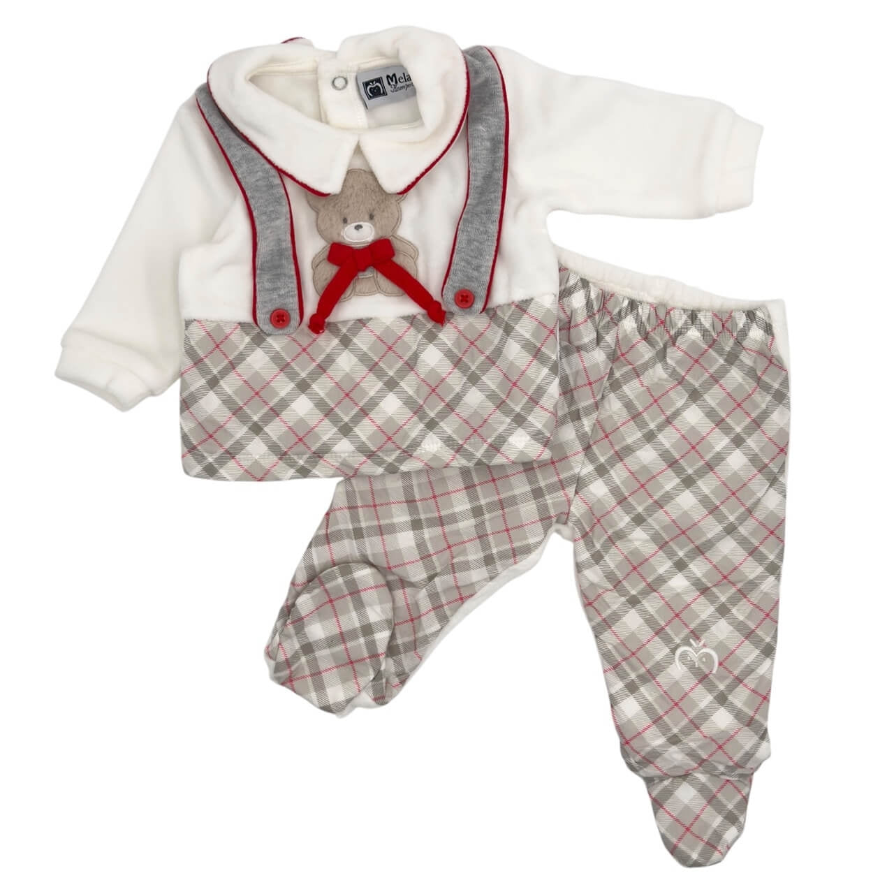 Questa tutina 2 pezzi in ciniglia firmata Melanie è l'ideale per avvolgere il tuo neonato nel massimo comfort fin dai primi giorni. Disponibile nelle taglie da 0 a 9 mesi, la tutina è composta da 80% cotone e 20% poliestere, garantendo una morbidezza delicata sulla pelle sensibile del bambino.