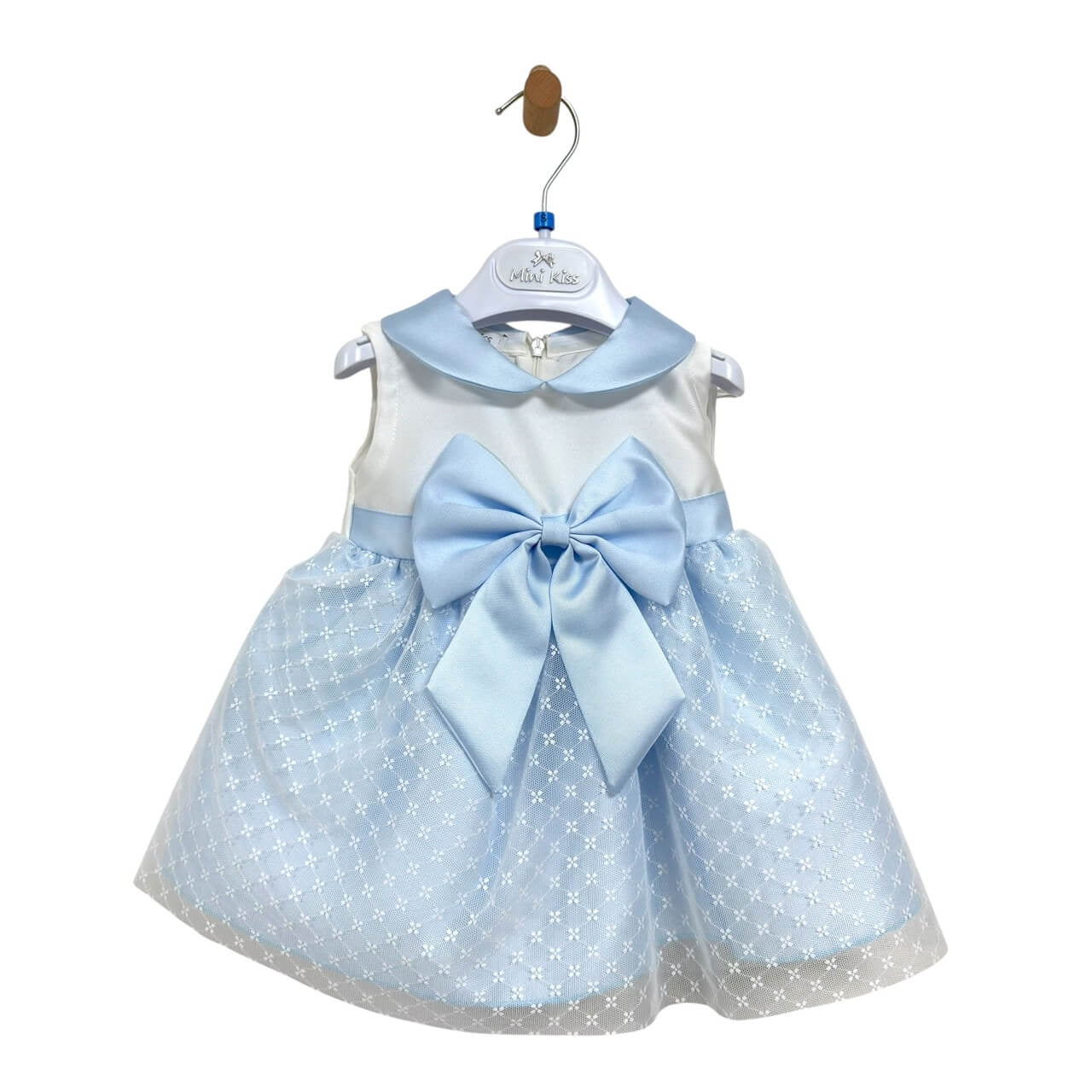 Eleganza e dolcezza si incontrano in questo raffinato abito da cerimonia firmato Mini Kiss, pensato per accompagnare le occasioni più speciali con stile e qualità tutta italiana.