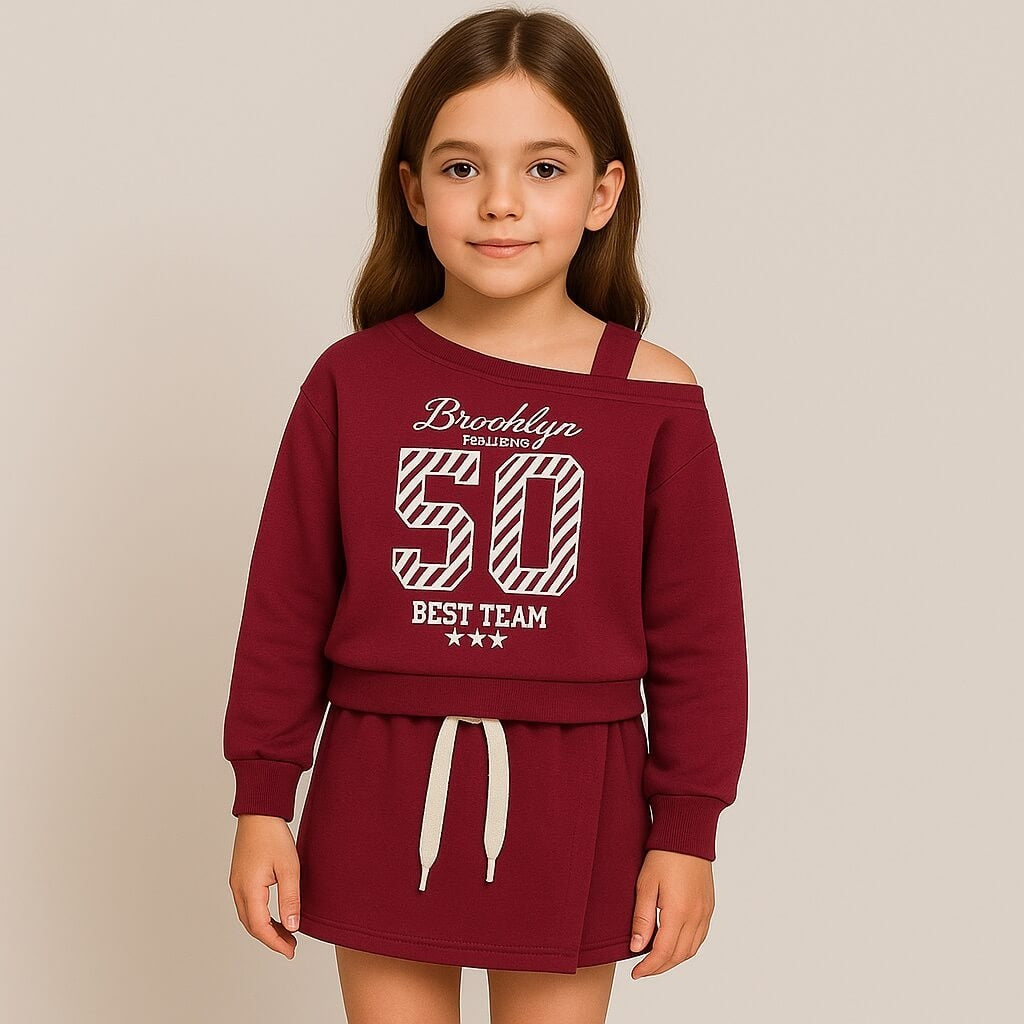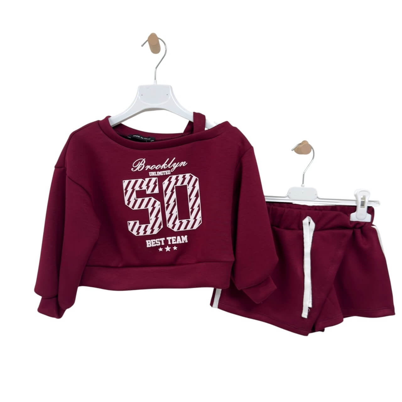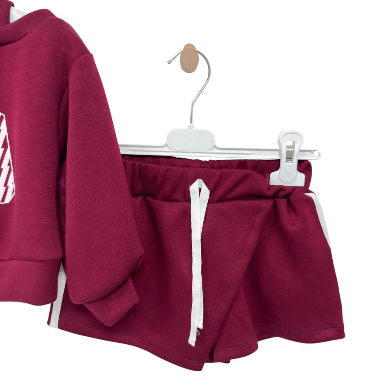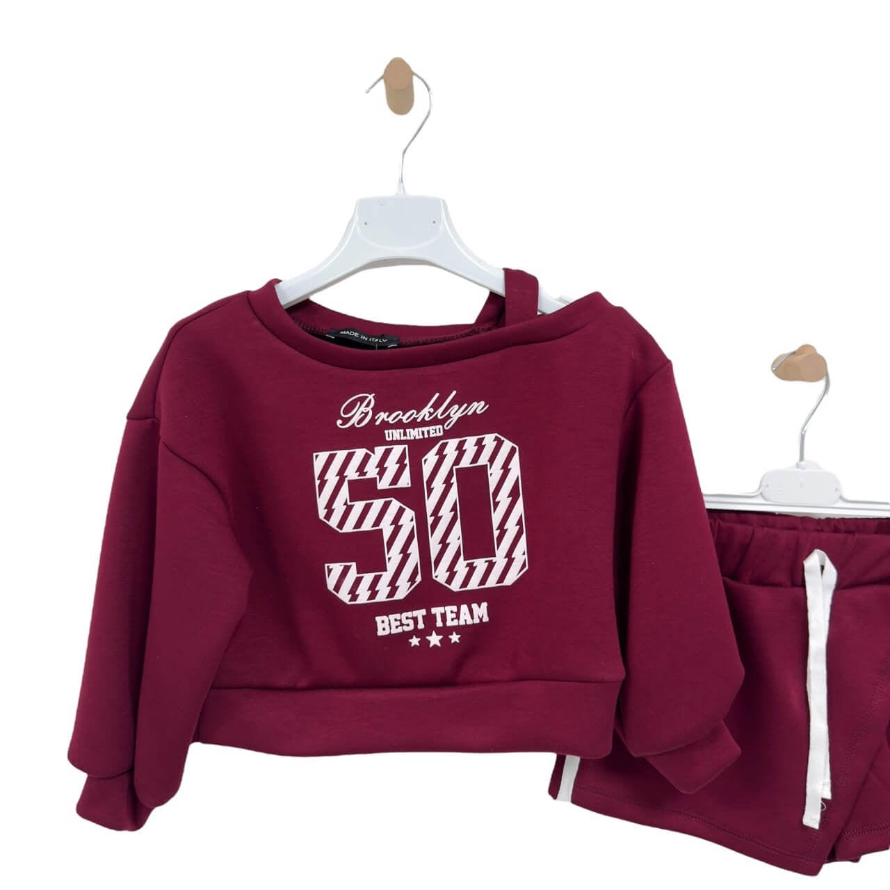 Un completo grintoso e alla moda composto da felpa cropped a maniche lunghe con stampa frontale e pantaloncino sportivo con coulisse regolabile. Realizzato in tessuti morbidi e confortevoli, è perfetto per il tempo libero e le attività quotidiane, garantendo praticità senza rinunciare allo stile.