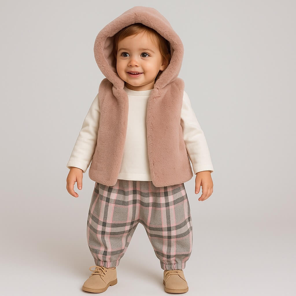 • Gilet in eco-pelliccia bianca con cappuccio, soffice e avvolgente, ideale per dare un tocco elegante e proteggere dal freddo.