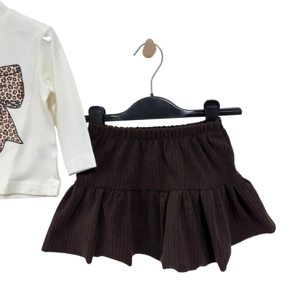 • Gonna in tessuto a costine color beige con balza arricciata, morbida e confortevole.
