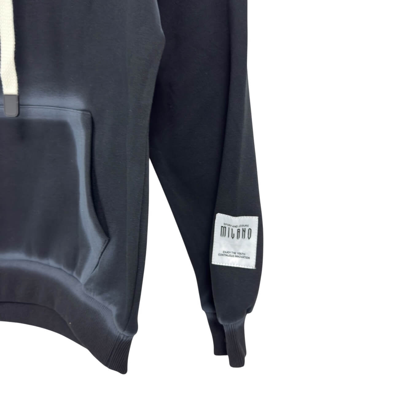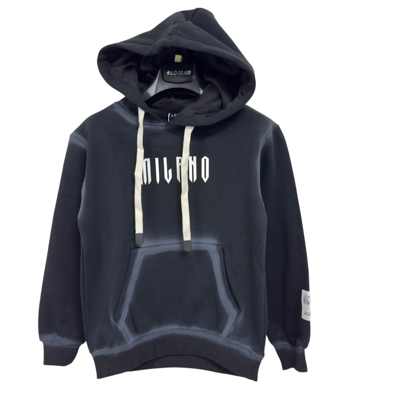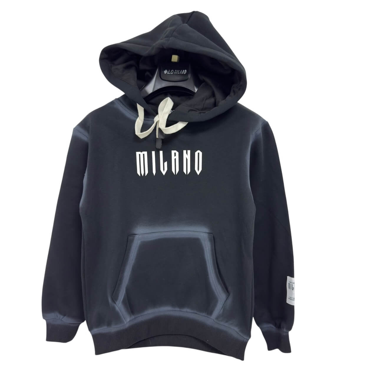 Felpa con cappuccio in cotone pesante, caratterizzata da un design moderno e dalla stampa frontale con logo MILANO. Presenta coulisse regolabili, tasca a marsupio e polsini elasticizzati per un fit comodo e casual.