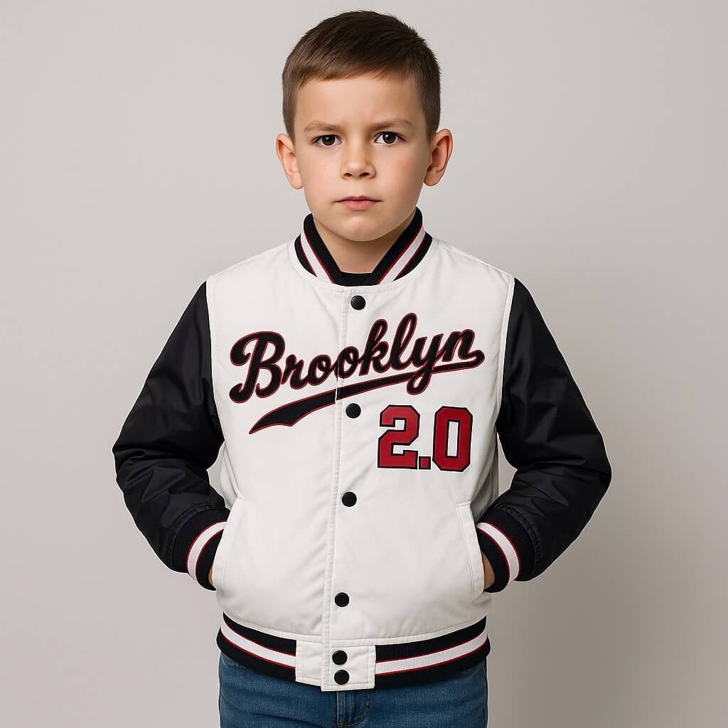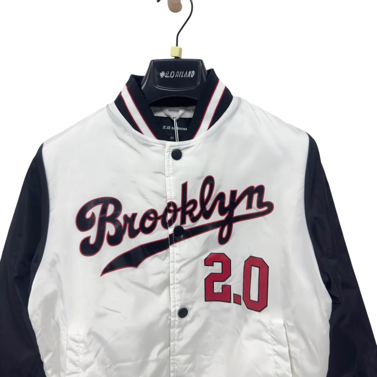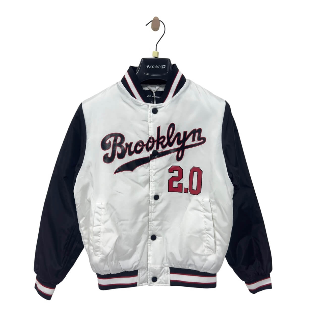 Giubbino modello college con chiusura a bottoni automatici e dettagli a contrasto. Presenta ricamo frontale Brooklyn 2.0 in stile varsity, tasche laterali e polsini elasticizzati a righe. Un capo iconico dal look sportivo e contemporaneo, perfetto per ogni occasione casual.
