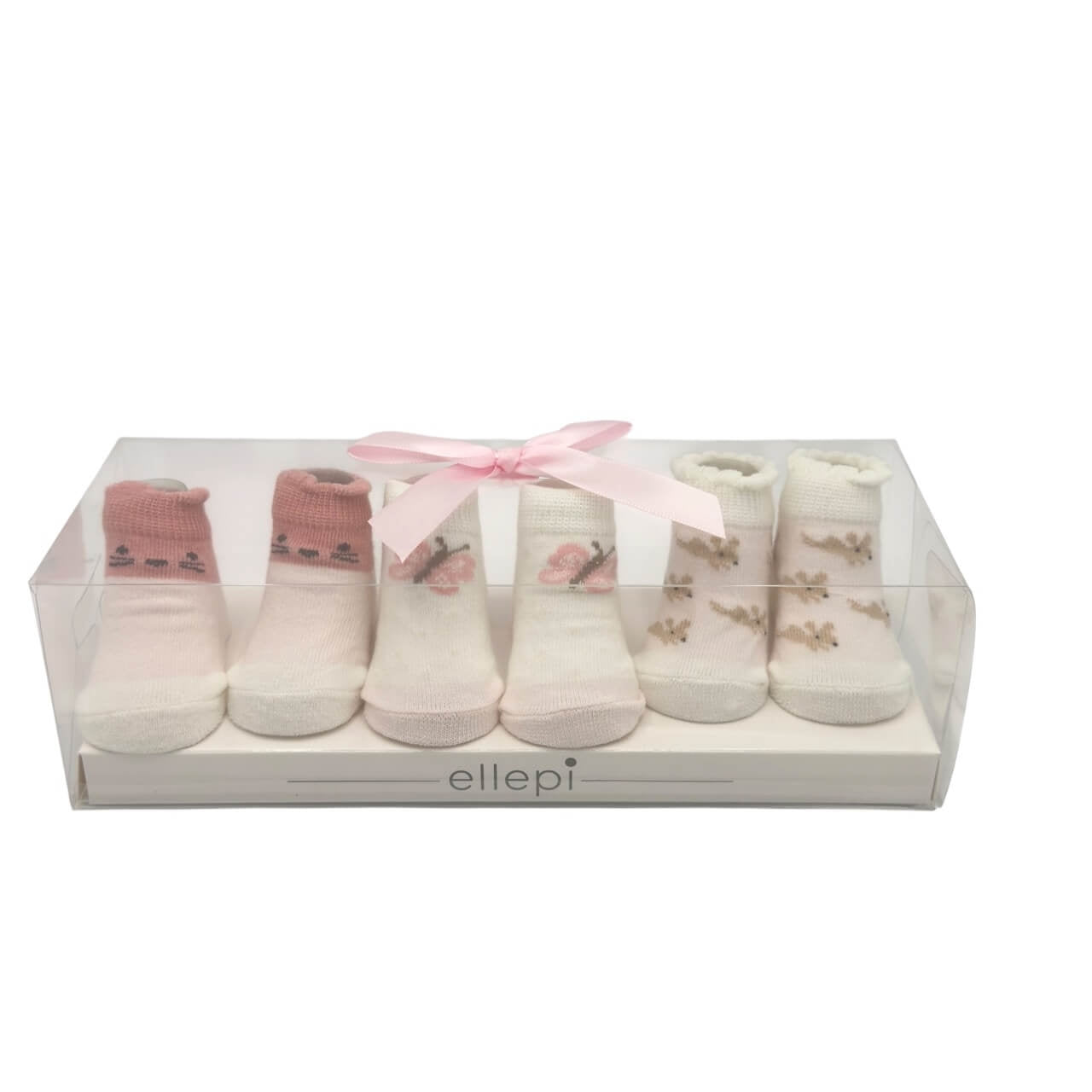 Set composto da 3 paia di calzini firmati Ellepi, ideali per neonati da 0 a 6 mesi.