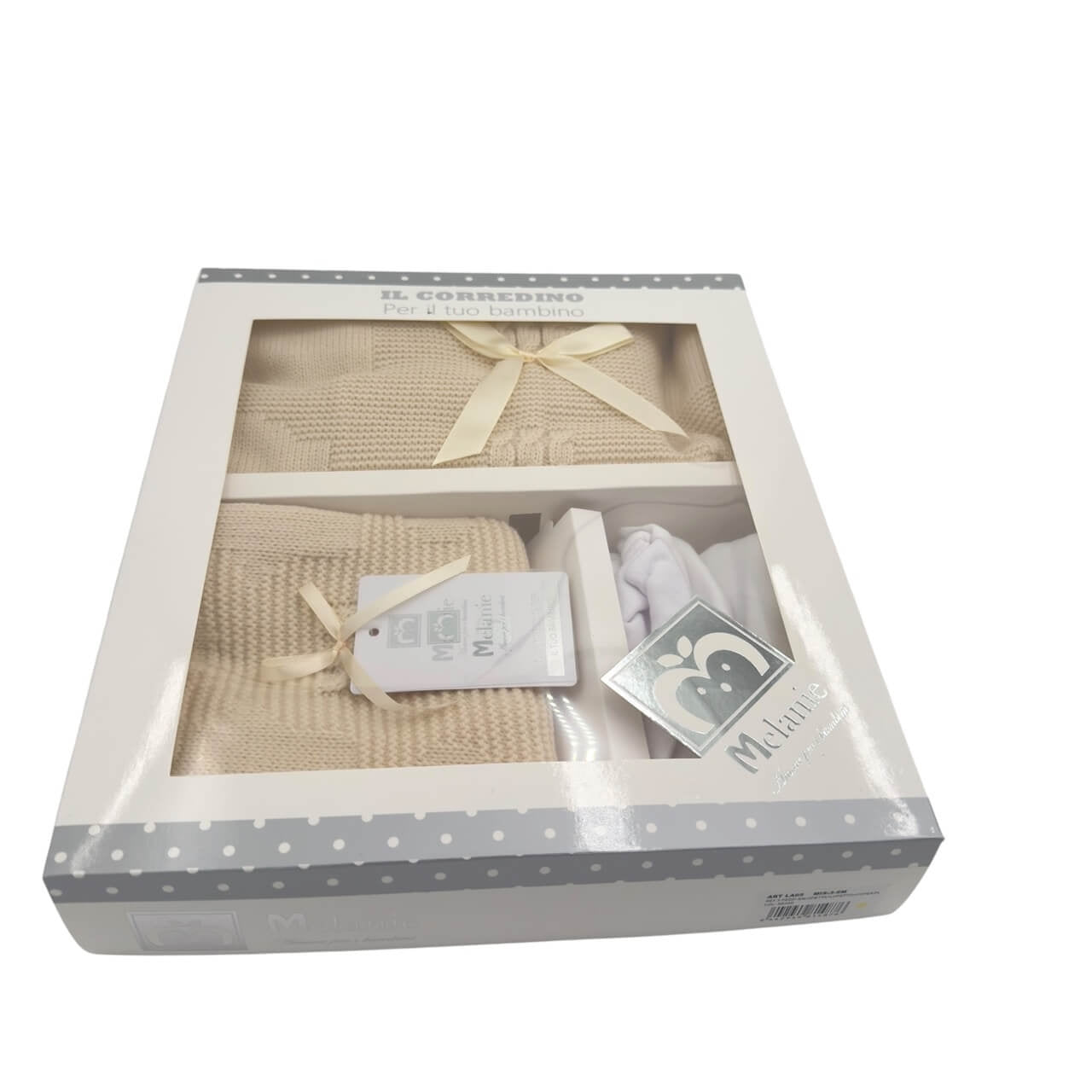 Set corredino elegante e pratico, ideale per i primi mesi del bambino. Realizzato in morbido tessuto acrilico, è composto da: