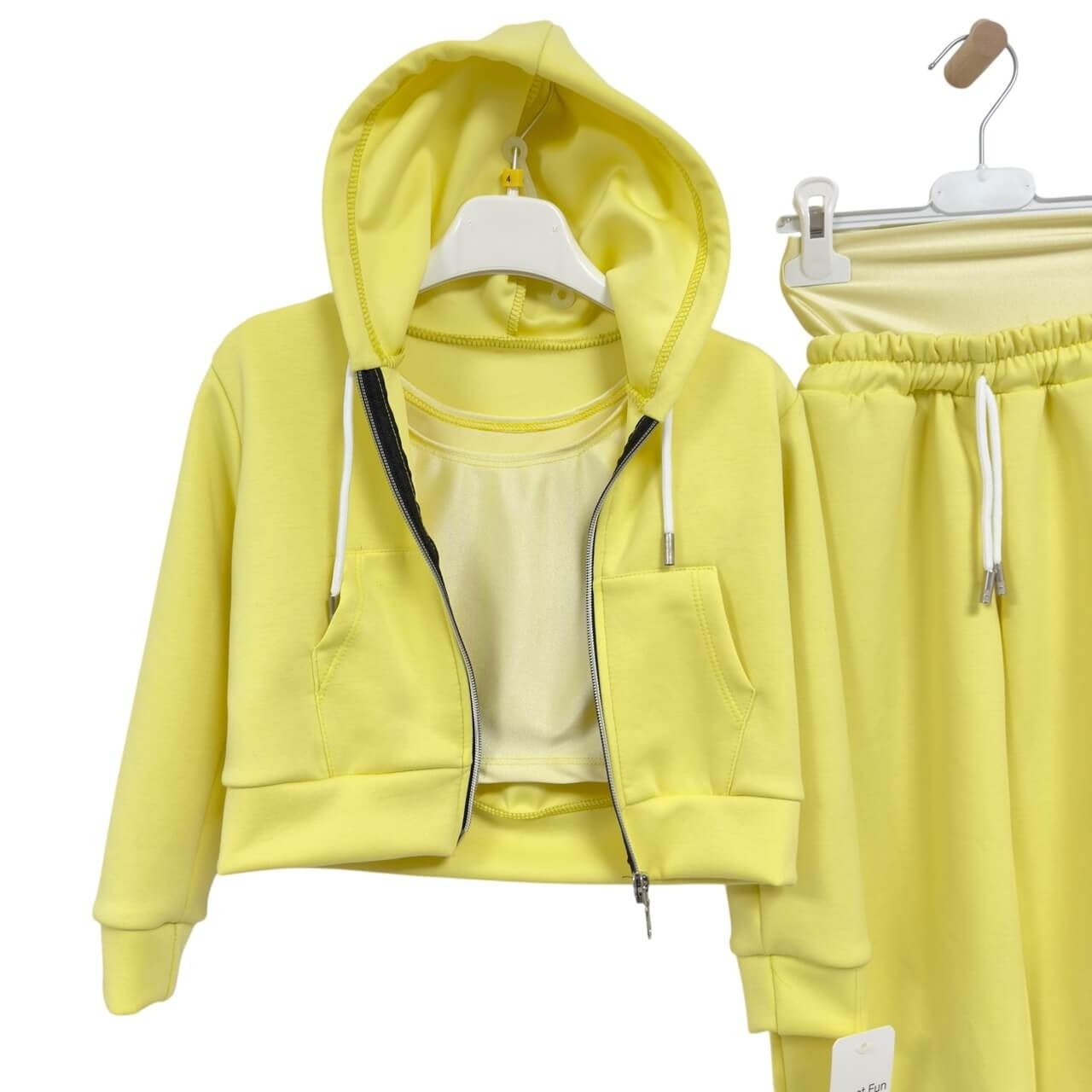 Tuta in Cotone 3 Pezzi - Bimba Con Cappuccio e zip